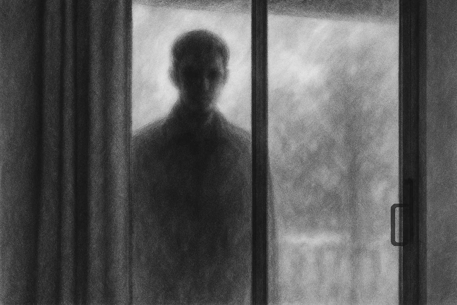 A man with pale skin, hauntingly dark eyes, and dark brown hair stood on the other side of the glass door ... watching her. Waiting.